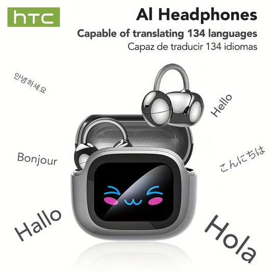1pc HTC NE39 AI Translator Headset with Real-Time Translation in 131+ Languages, Wireless 6.0, Long-Lasting Battery, Touch Control, Gaming Mode, Compatible with PC/Phone/Tablet - Lightweight AI Translation Earbuds for Travel,
