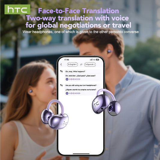 1pc HTC NE55 AI Translation Earbuds Real-time Translation Headphones OWS Open-Ear Wireless Headphones, Latest BT V6.0, Noise Reduction Clear Call, 6.5 Hours Music Long Battery Life, Big speaker Big Volume, Wired Headphones, H
