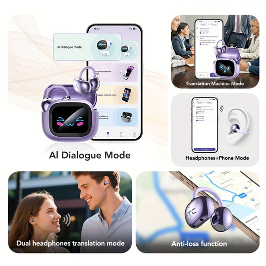 1pc HTC NE55 AI Translation Earbuds Real-time Translation Headphones OWS Open-Ear Wireless Headphones, Latest BT V6.0, Noise Reduction Clear Call, 6.5 Hours Music Long Battery Life, Big speaker Big Volume, Headphones Noise Ca