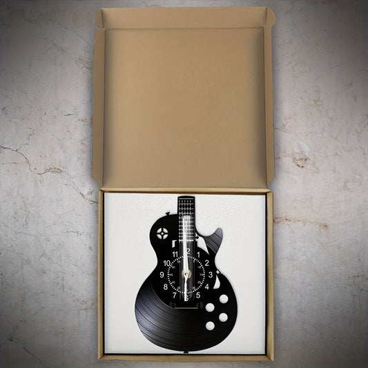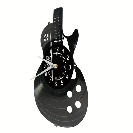 1pc Guitar Vinyl Wall Clock Gifts For Holiday, Black Music Wall Clock Instrument Art Unique Gifts For Men Women Guitar Player For Birthday Wall Decor, Fall Halloween Decor