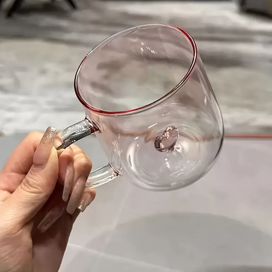 1pc Heart-Shaped Gradient Glass Cup, 350ml - Heat-Resistant, Decorative Coffee & Juice Mug with Handle, Perfect for Valentine's Day or Birthday Gift