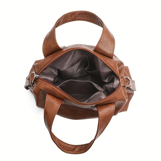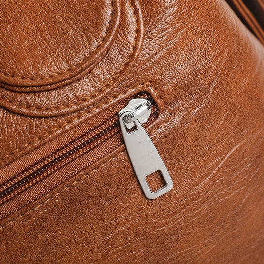 Women'S Retro Backpack - Solid Color BrownRed/ - Adjustable Strap, Zipper Closure, - Durable Casual & Office Bag for Everyday, Travel - Easy-clean Design, Backpack For Travel, Vintage Style, Daily Commute, Classic Look, Sturd