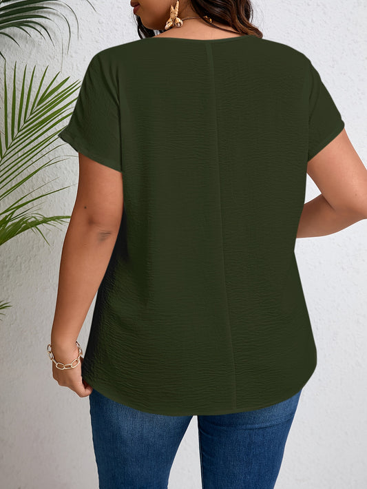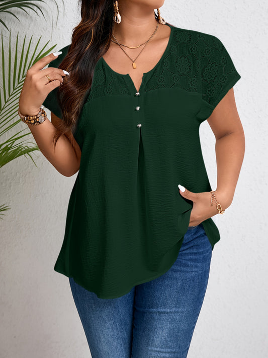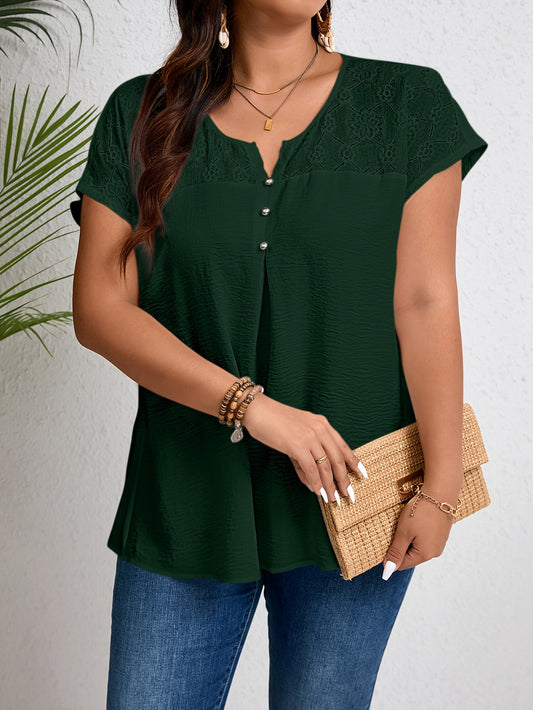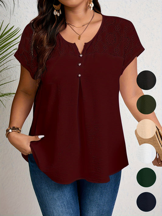 Women'S Plus Size Casual Top - Elegant Maroon Blouse with Contrast Lace Detail, Non-Stretch Fabric, Perfect for Spring/Summer/Fall, Plus Size Blouses