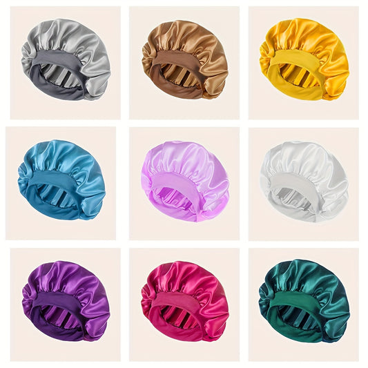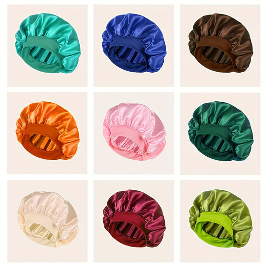 Women'S Satin Bonnet 2023, Elastic Band Hair Hat for Curling and Straight Hair, Wide Brim Sleep Cap, Bath Cap, Dry Hair Cover, 100% Polyester, Oil-Free, Comfortable Fit