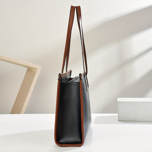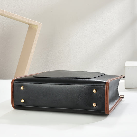 Women's Professional Handbag - Large Capacity Tote & Briefcase, Work Bag with Zipper Closure, Elegant Minimalist Purse for Office, Commute, Formal/Casual Events - Coffee Brown/Beige/Black, Formal Event Accessory, Quilted Patt