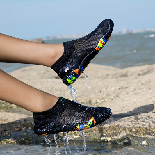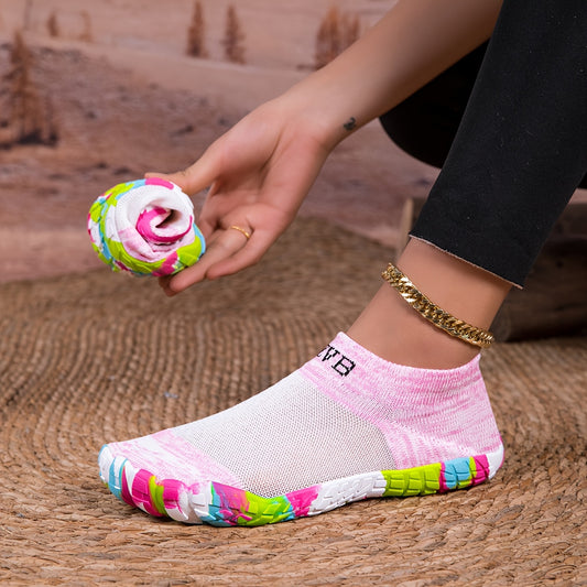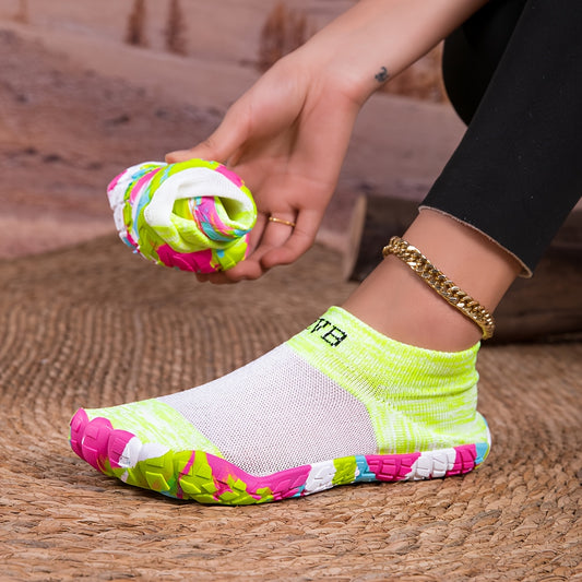 ZVB Women's All-Terrain Water Shoes - Slip- Rubber Sole & Arch, Breathable Quick- Slip-On/Wear, Lightweight Cushioned Insole for Swimming, Yoga, Surfing, Hiking, Beach - All-Season Indoor/ Aquatic Shoes with Elastic Woven Upp