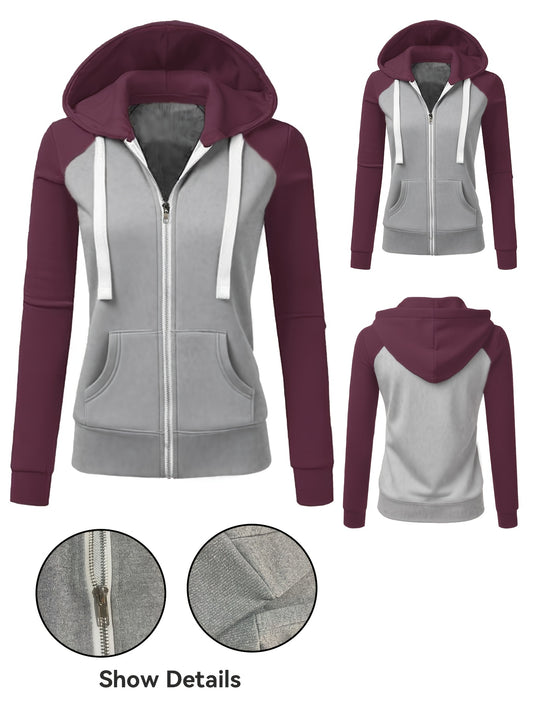 Women's Elegant Zip-Up Hooded Jacket - Slim Fit Winter Coat with Full-Zip Front Closure, Side Pockets - Machine Washable Outerwear for Office, Casual, Formal Events - Available Now!, Office Wear, Sleek Design, Soft Fabric, Fa