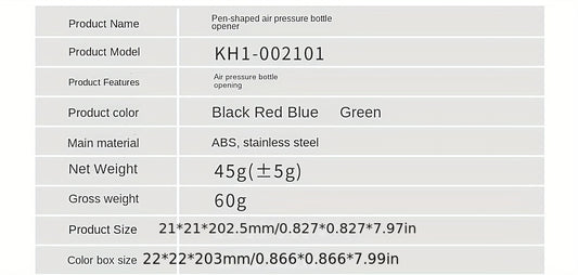 Fornecedor:Hi! Shop1pc, Metal Opener, Air Pump Wine Bottle Opener, Safe Portable Stainless Steel Pin Cork Remover, Air Pressure Corkscrew, Kitchen Tools, Bar AccessoriesPreço normal A partir de €6,57 EURPreço normalPreço unitário / por-