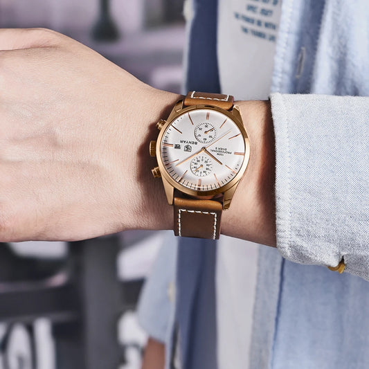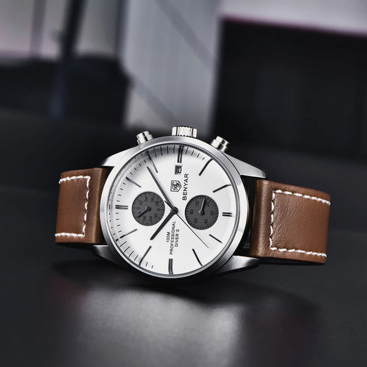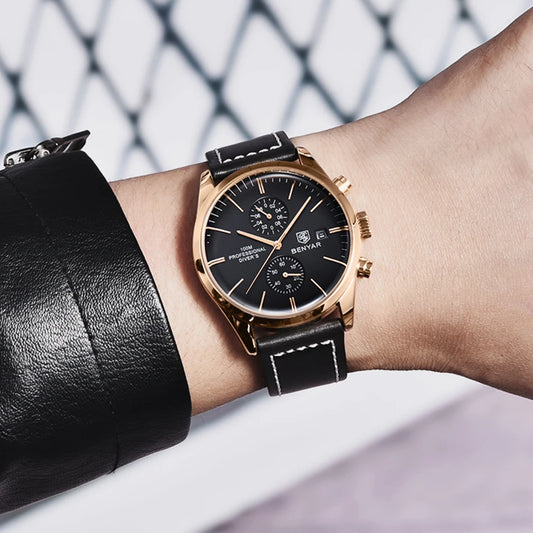 Fornecedor:Hi! Shop2024 New BENYAR Leather Men Quartz Wristwatches Luxury Brand 100M Waterproof Men Watch Military Sports Chronograph Watch for MenPreço normal A partir de €49,65 EURPreço normalPreço unitário / por-