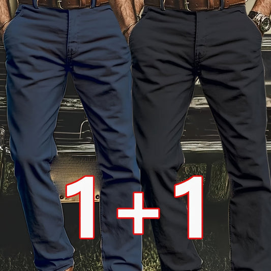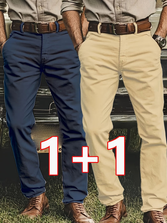 2pcs Men's Stretch Chino Pants - Straight-Leg Business Casual Trousers with Elastic Waistband, All-Season Formal & Everyday Pants for Office, Meetings, and Casual Attire, Modern Pants, Comfortable Fit, Versatile