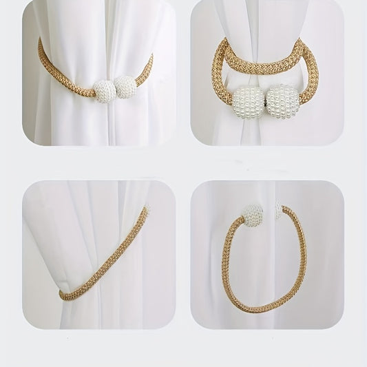 2pcs Large Modern Magnetic Curtain Tiebacks - Elegant Pearl Design, Easy-to-Use, Stylish Window Treatment Holdbacks for Home Decor, Curtains for Living Room