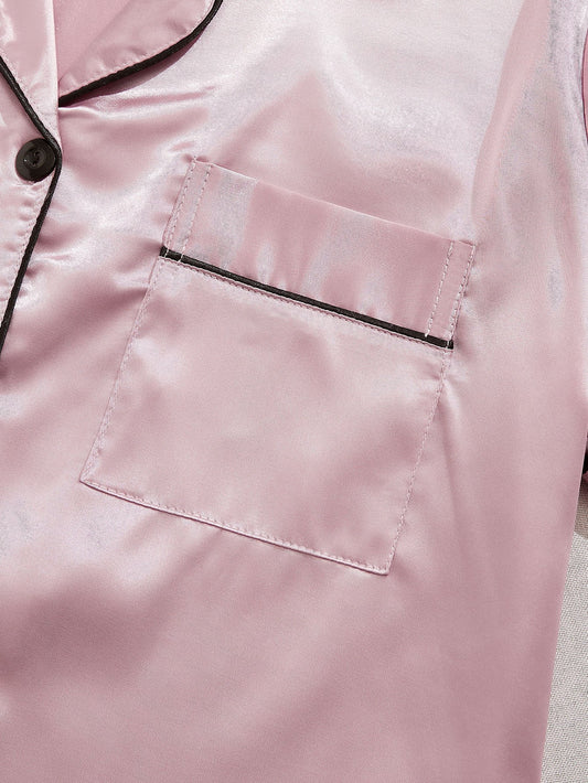 3 Sets Satin Pajama Set, Short Sleeve Lapel Top & Elastic Waistband Shorts, Women's Sleepwear & Loungewear