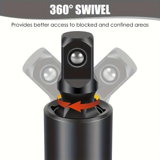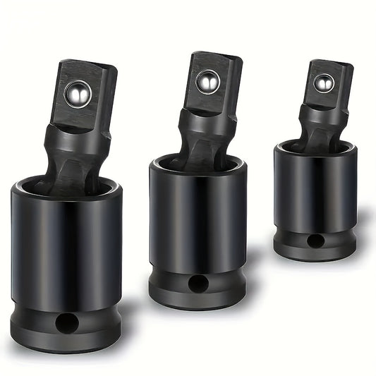 3-Piece Impact Socket Adapter Set - Universal Joint Set, 3-Piece Rotary U-Joint Sockets for Industrial, Automotive and Home Repair - Cr-Mo Steel, Fits 1/2", 3/8", 1/4" Drive - Mechanical Operation, No Electricity Require