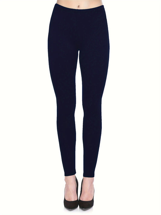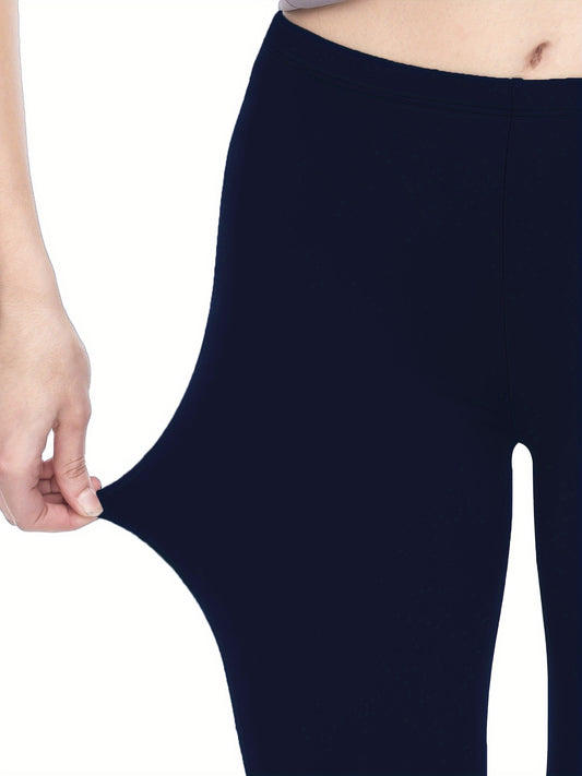 3-Pack High-Elasticity Slim-Fit 9/10 Length Pants - Solid Color Tight Waist All-Season Trousers, Machine Washable & Dry Cleanable, Casual to Dressy Wear (Compatible with Skirts/Blouses) - Bulk Pack for Cost Savings & Easy War