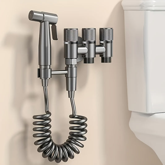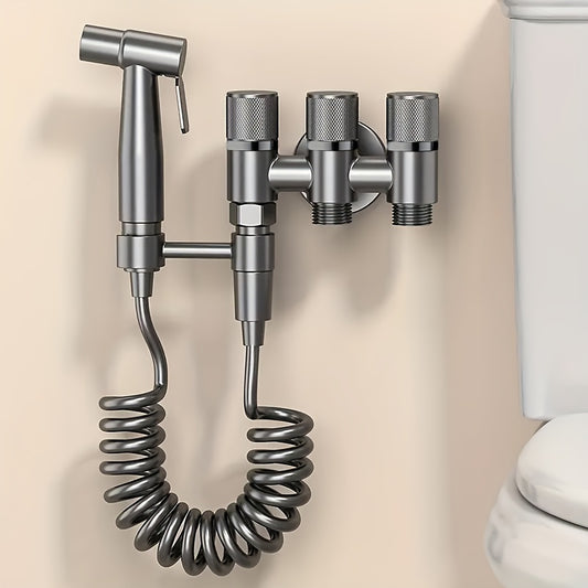 3-in-1 Stainless Steel Water Dispenser with Spray Gun - Wall-Mounted, Chrome Finish, Valve Core, No Electricity Needed for Bathroom and Kitchen, Durable Metal Design, Water Flow Control, Modern Aesthetic, Smooth Finish