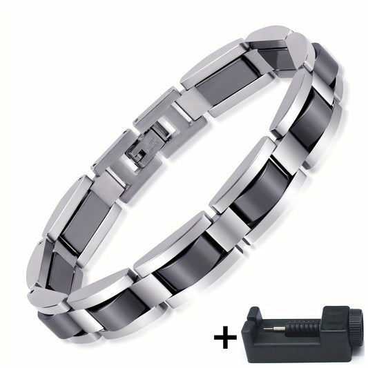 304 Stainless Steel Bracelet, Black Electroplated Unique Design - Perfect holiday birthday gift for dad and elders at Christmas. Includes Removal Tool; Also suitable as a women's/unisex accessory, Christmas Gift