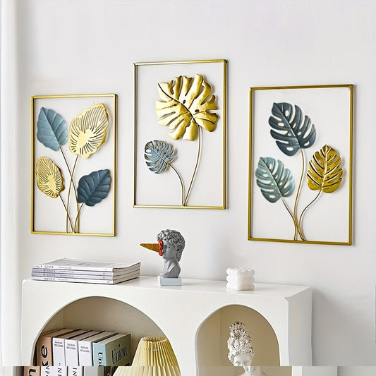 3pcs Mounted Metal Wall Decor, Thick Minimalist Metal Wall Art, Modern Metal Sheet Wall Covering, Suitable for Sofa Backdrop Bedroom and Living Room, Golden Classic Style, No Frame, 43.94x29.97cm