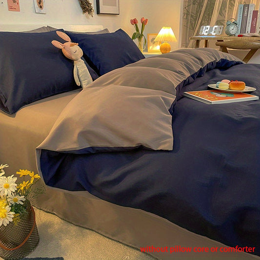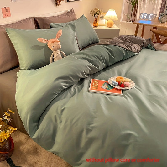 3pcs Simple Duvet Cover Set, Solid Color Double Matching Bedding Set, Soft Comfortable Breathable Duvet Cover, For Bedroom Guest Room School Dorm Decor (1*Duvet Cover + 2*Pillowcase, Without Core)