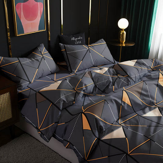 3pcs Set, Golden Striped Triangle Print Duvet Cover Bedding Kit, Soft and Comfortable Breathable, Suitable for Bedroom Guest Room School Dorm Decor 1 * Duvet Cover + 2 *, Pillowcases, Duvet Cover Set