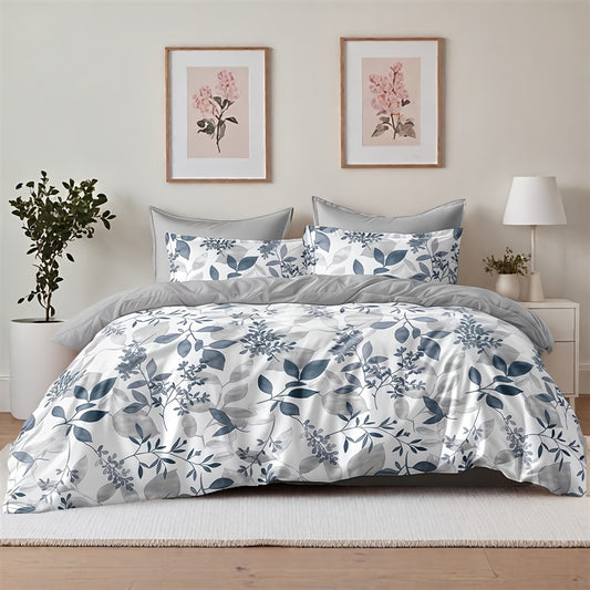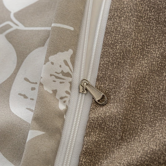 3pcs Solid Color Printed Branch Pattern Duvet Cover Set, Includes 1pc Duvet Cover and 2pcs Pillowcases Without Inserts, Zipper Closure, Machine Washable, Polyester Material - Suitable for Student Dormitory Home Bedroom