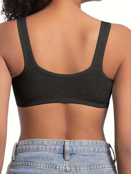 3pcs Solid Racer Back Sports Bra, Sporty Comfy Push Up Bra, Women's Lingerie & Underwear