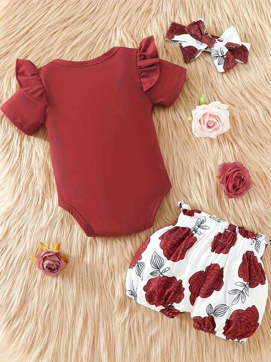 3pcs Short Sleeve & Shorts Set for Newborns - "I'm Daddy's Girl" Letter Print Pants and Headband, Mommy's World Alphabet Kids' Outfit, Perfect for Outdoor