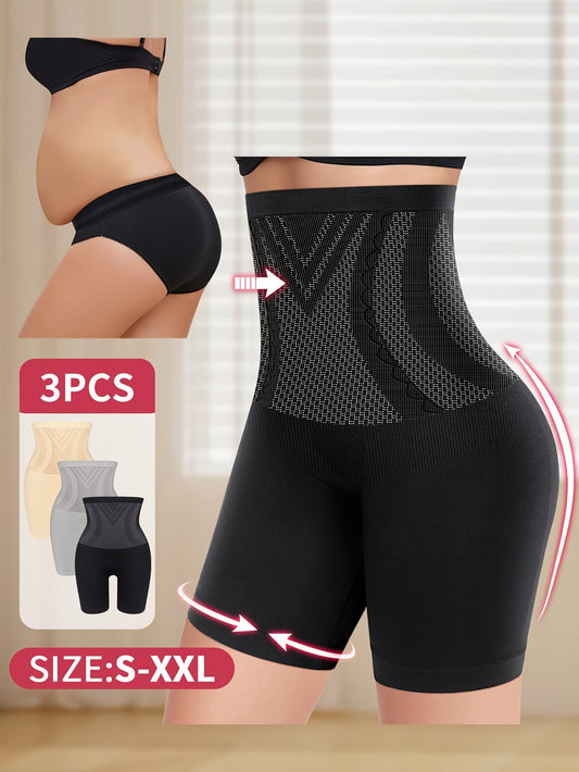 3pcs Pack, High Waist Tummy Control, Body Shaping, Butt Lifting, Seamless Panties, Women's Panties, Four-corner Panties, Boxer Briefs