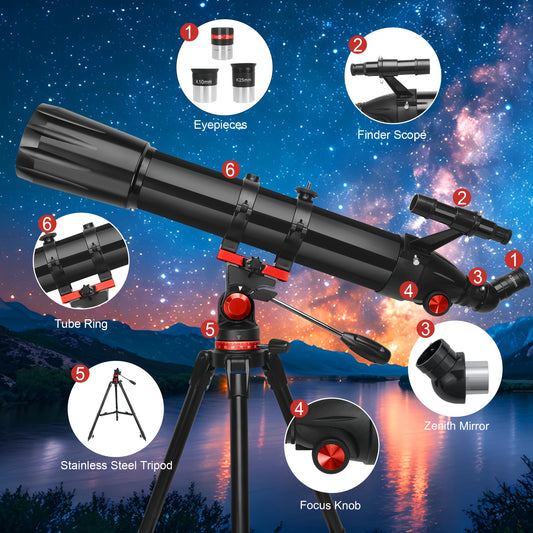 450x Magnification Professional Refractor Telescope, 90mm Aperture, 900mm Full Coated, High Transmittance with AZ Mount and Phone Holder for Moon Gazing, Bird Watching, Stargazing - Ideal Christmas and Birthday Gift