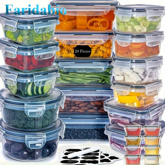 48pcs Airtight Food Storage Container Set with Labels And Marker, Includes 24 Lids + 24 Containers, Reusable & Leak-Proof Plastic Storage Containers for Meat, Eggs, Fruit And Vegetable, Perfect for Pantry, Travel, Outdoor Pic