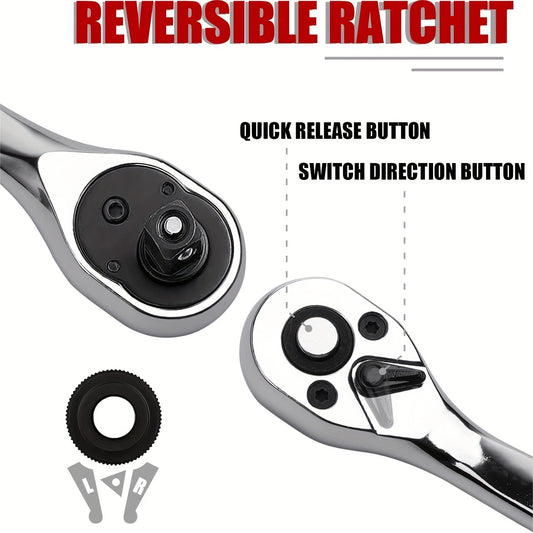 46pcs Motorcycle And Car Repair Toolkit: Ratchet Torque Wrench, Wrench, Screwdriver, Socket Set - Perfect For Motorcycle And Car Repairs!