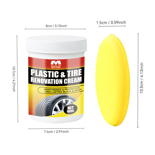 400g Multi-Surface Restorer Cream - Plastic & Tire Black Restoration, Anti-Aging Formula for Car Dashboard, Wheel Hubs, Sofa Seats - Universal Use, Before & After Results