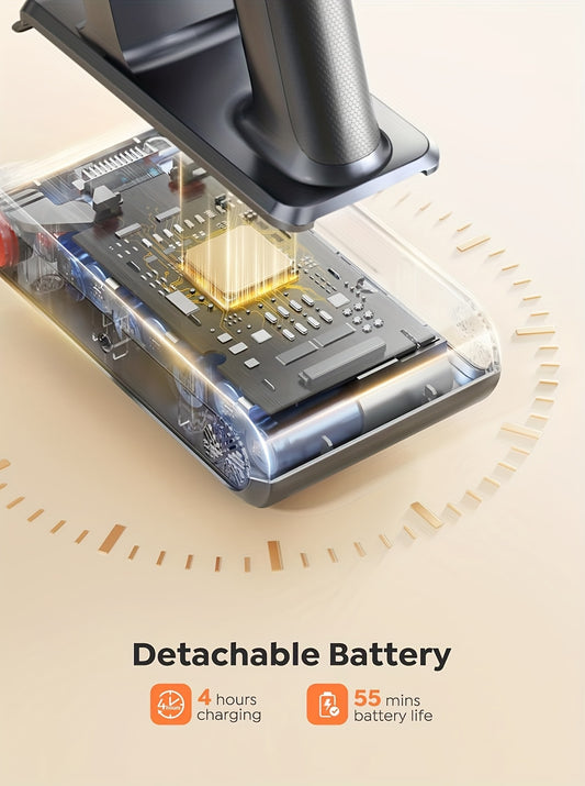 46000Pa/55Min Vacuum Cleaner Cordless, Cordless Vacuum Cleaner Super Quiet, Powerful Cordless Stick Vacuum Cleaner with LED Display/Anti-Tangle Brush, Detachable Battery, Lightweight 1.5L Dust Cup Perfect for Pet Hair, Floor,