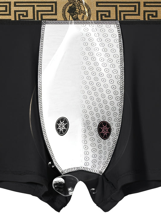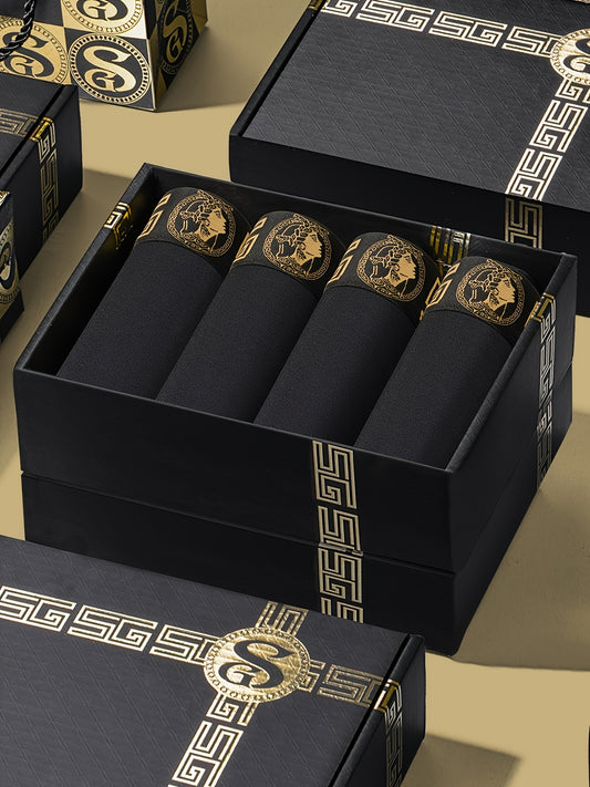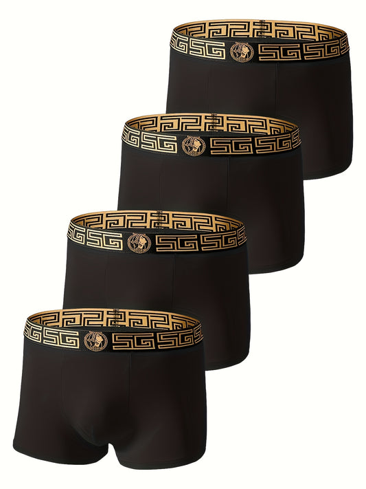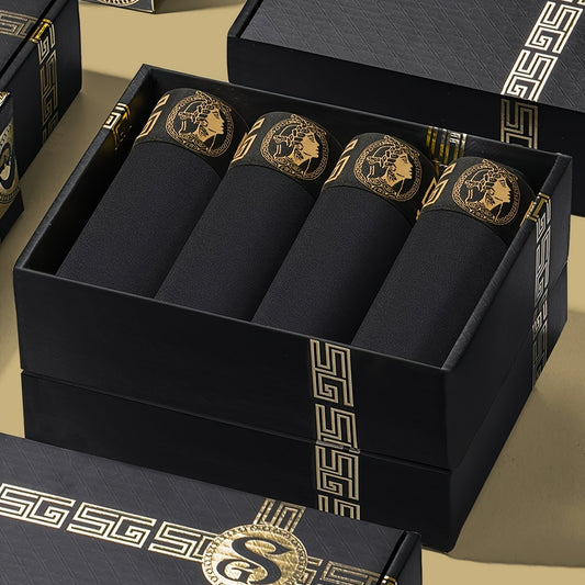 4pcs Black and Golden Boxer Briefs - Soft, Breathable Viscose, Comfortable Daily Wear for Men, Slim Fit with Elasticity, Solid Color Design, Casual Underwear|Boxer Briefs|Boxers as a Gift