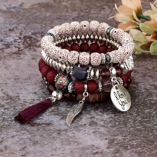 4pcs Bohemian Ethnic Style Winged Tassel Beaded Bracelets, Women's Fashion Jewelry, Versatile for Casual Attire and Perfect Holiday Gift for Girlfriend or Wife!