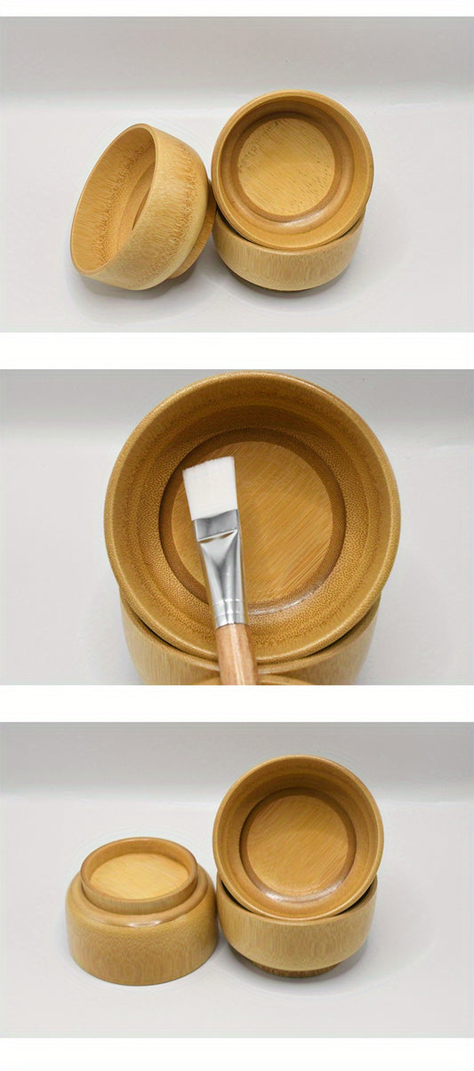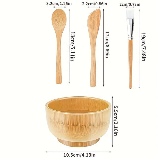 4pcs Bamboo DIY Face Mask Mixing Kit - Includes Bowl, Spatula, Brush & Beauty Scoop - Alcohol-Free, No Batteries Required