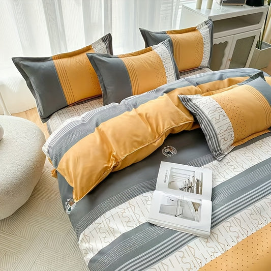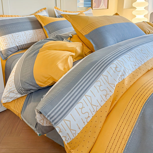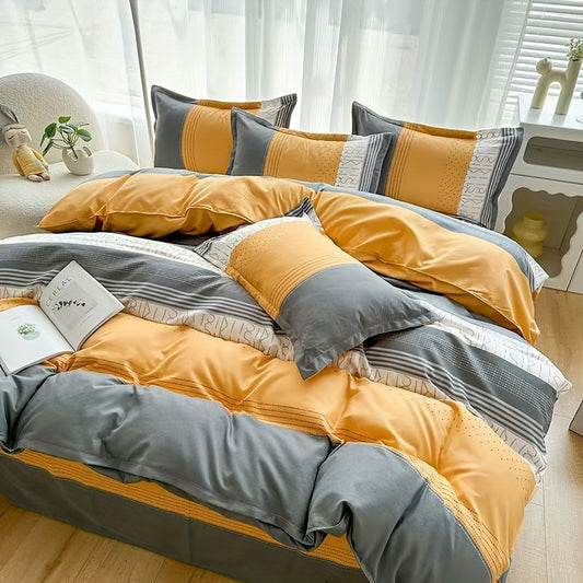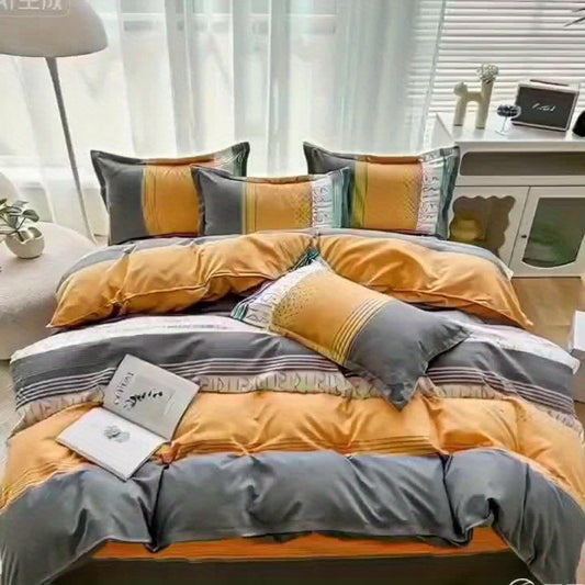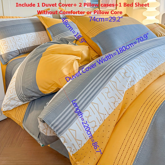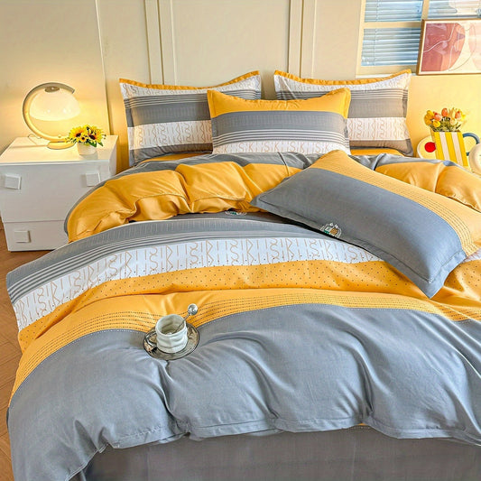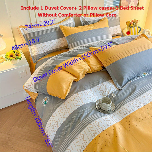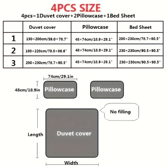 4pcs Bedding Set Multi Color, Perfect for Bedrooms and Dormitories, Soft and Comfortable Bedding Includes 1 Duvet Cover, 2 Pillowcases, 1 Flat Sheet (Does Not Include Comforter or Pillow Inserts), Guest Room Setup, Stylish Du