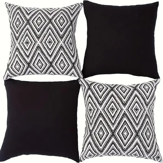 4pcs Bohemian Geometric Print Square Throw Pillows - Black & White Modern Boho Decor with Zipper Closure, Machine Washable Cushions for Sofa, Bed, Living Room, Kitchen - 14x14, 16x16, 18x18, 50.8x50.8 cm - Single-Sided Decora