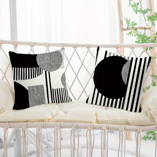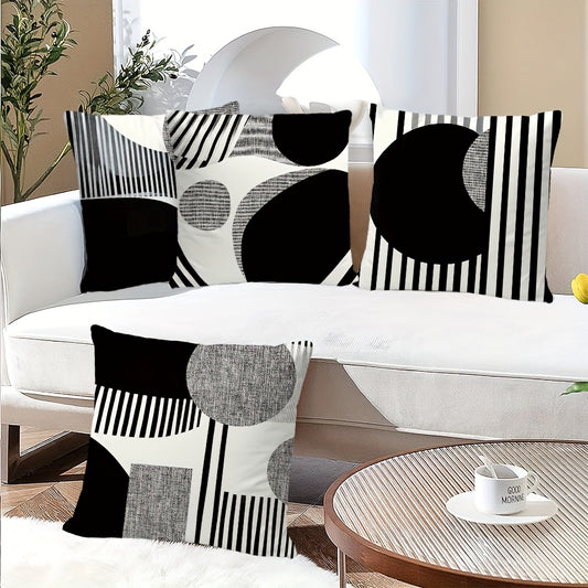 4pcs Bohemian Black and White Geometric Throw Pillow Covers, 45.72cm, Short Plush Polyester Fabric with Zip Closure, Modern Abstract Design for Living Room, Bedroom, Couch Decor, Party Home Decor Pillowcases, Living Room Deco