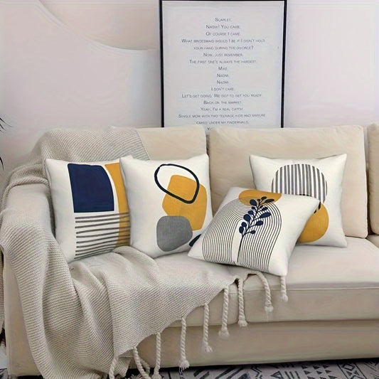 4pcs Boho Abstract Art Decorative Throw Pillow Covers - Modern Geometric, Sun & Moon Designs with Botanical Accents, Rectangular Polyester Cushion Cases for Home Decor - Machine Washable, Zip Closure (No Inserts), Decorative