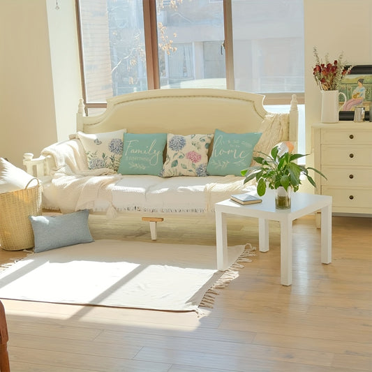 4pcs Blue Hydrangea Linen Blend Throw Pillow Covers, Cushion Cover For Bed Sofa Couch Living Room Decor Home Decor, No Pillow Insert, 18inch*18inch