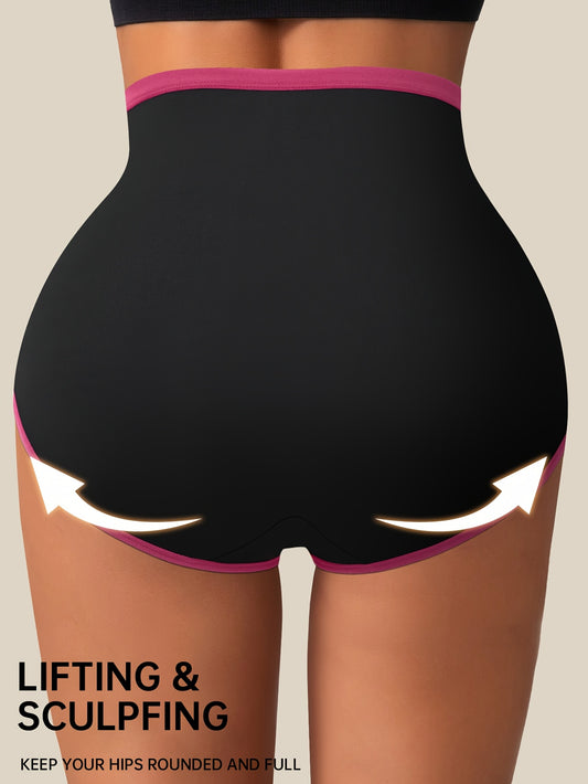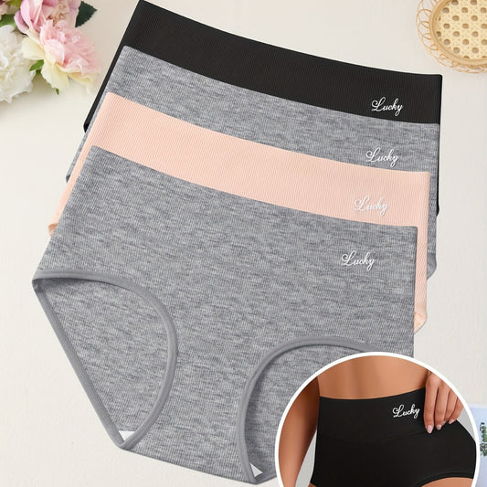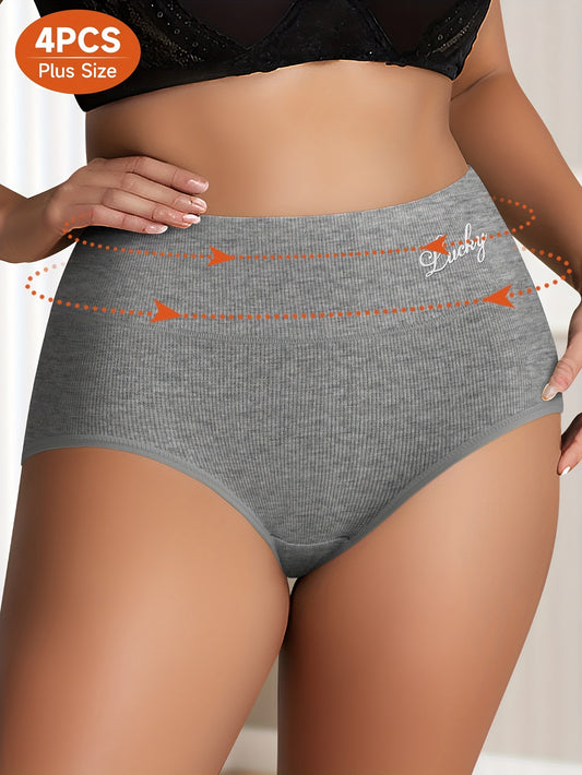 4pcs Plus Size Women'S High-Waist Shapewear Briefs - Breathable, Non-Slip, No-Slip, No-Roll, Comfort Fit with "Lucky" Design, Solid Color & Striped Patterns, High Elasticity Fabric for All-Day Comfort, High Waisted Underwear,