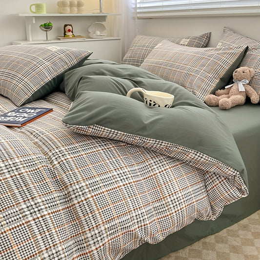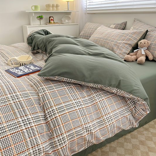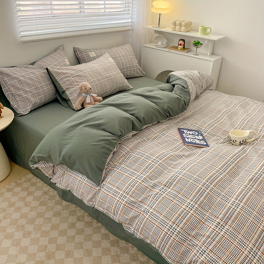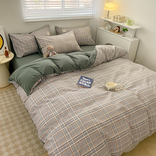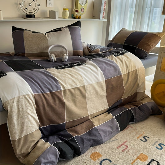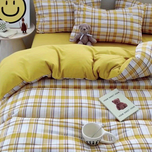 4pcs Multi-Color Bedding Set (Including 1 Quilt Cover, 1 Bed Sheet, 2 Pillowcases, Excluding Pillow Core), Suitable for Bedroom And Dormitory Use, Soft And Comfortable, Suitable for All Seasons