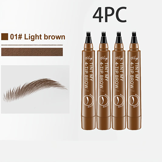 4pcs Professional Makeup Artist Ultra-Fine 4-Branch Eyebrow Pencil, Waterproof & Sweatproof, Natural 3D Wild Brow Look, Realistic Definition, Smudge-Free, Black Set - Perfect Christmas or Birthday Gift
