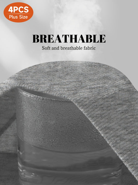 4pcs Plus Size High-Waist Tummy Control Women's Panties, Breathable Mesh Seamless Cross Detail Shapewear Briefs