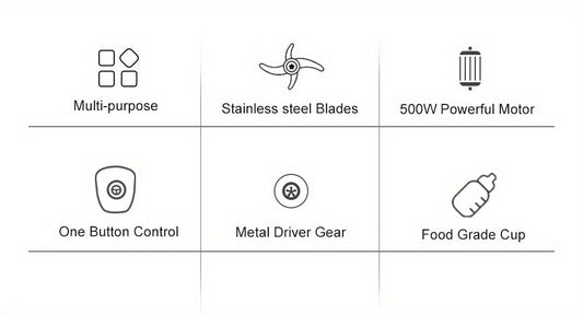 500W Portable Personal Blender Mixer Food Processor with Chopper Bowl 600ml Juicer Bottle Meat Grinder Youngsters Food Maker