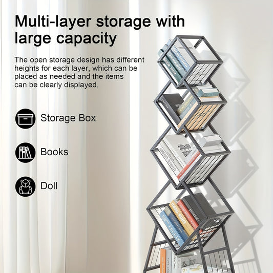 5-Tier Rotating Bookshelf with Wheels - Heavy-Duty Modern Minimalist Bookcase, 360° Swivel Shelf, Space-Saving Storage Organizer for Home Office, Living Room, Bedroom - Easy-Move Casters (Black), Bookshelf Decorations, Versa