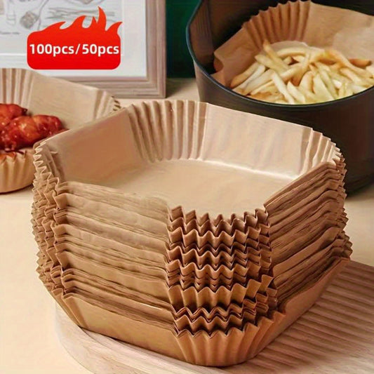 50/100pcs Non-Stick Air Fryer Disposable Baking Paper Pads - Oil-Proof, Waterproof & Waterproof, Ideal for Baking Fried Foods, Perfect for Easter, Mother'S Day & Father'S Day Gifts, Air Fryer Accessories