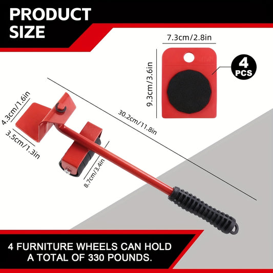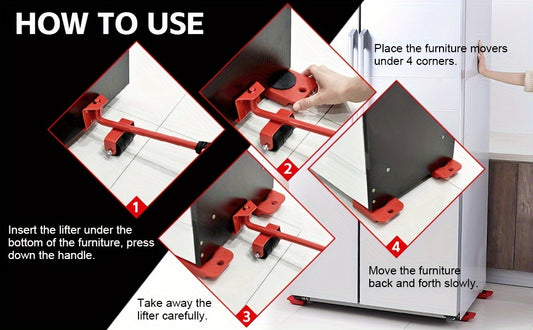 5pcs Heavy-Duty Furniture Moving System, Uncharged, No Battery Required, with Lifter Tool Set for Hardware Moving Tools