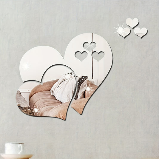 5pcs Mirror Sticker, Acrylic Shatterproof Mirror Heart Wall Stickers Decor For Bedroom Living Room Dining Room Kitchen School(10.2*7.8inch)