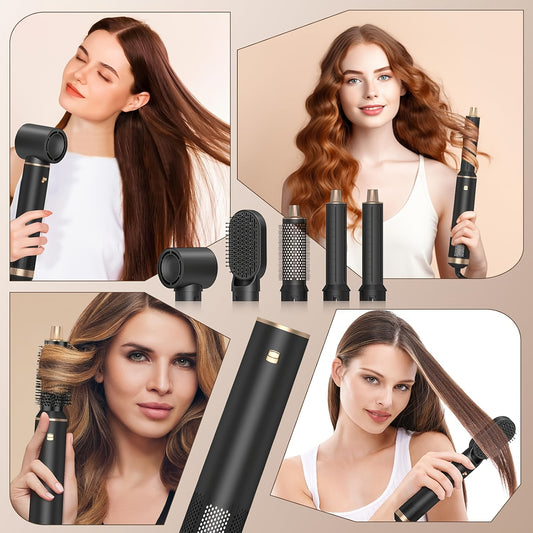 5in 1 Hair Styler Hot Air Brush Detachable Hair Hot Brush Air Curler Air Curling Wrap Styler Upgrade Hot Air Brush Curling Iron Brush Hair Styling Tools for Curling Straightening, Hair Straightening Tool, Salon Styling Tool,